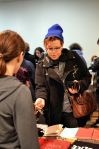 Midge Blitz shows off photos from her table at the zinefest